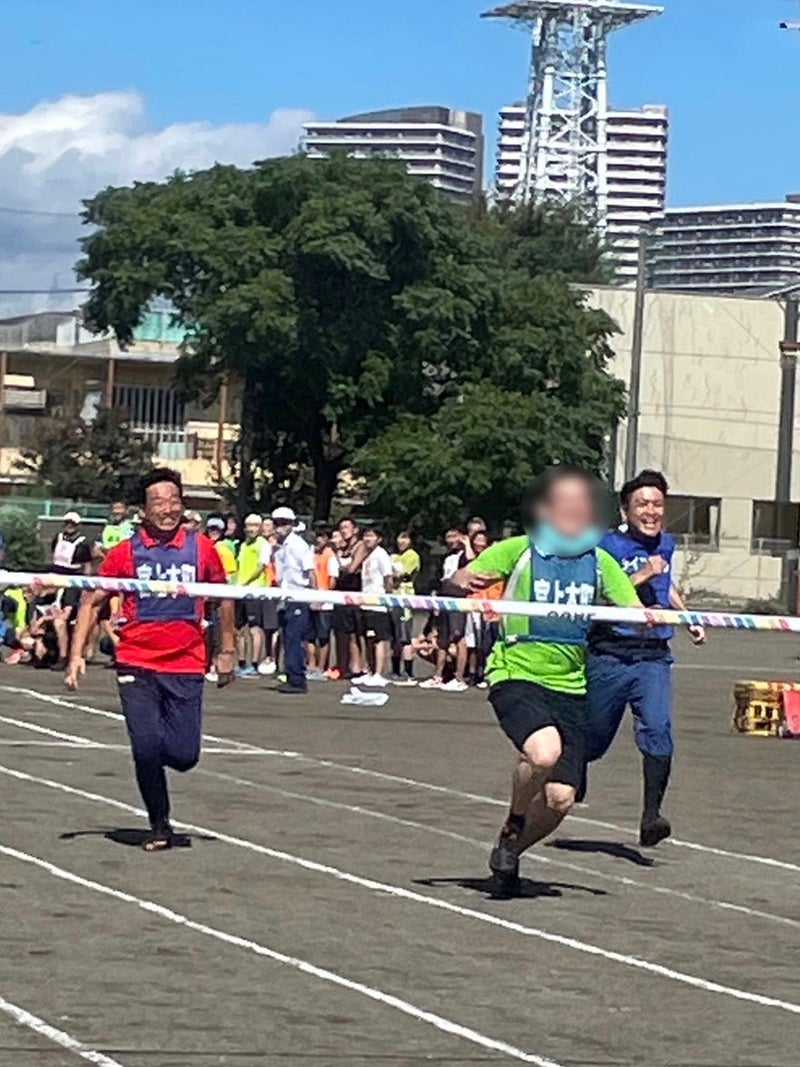 自由参加の50m走では消防団の仲間と、そして谷川市議と競争しましたが、結果は2着でした!